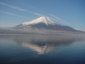 Sakasa Fuji (upside down Mt. Fuji) This can only be seen in the morning on calm days when the water is cold, and is rarely seen. Miki and I have been really lucky to get this photo. | |